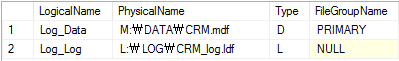 WITH MOVE 'Log_Data' TO 'E:\DATA\CRM.mdf',