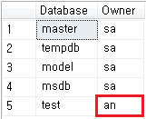나는 'test' 라는 DB 의 소유자를 'sa' 에서 'an' 으로 바꾸어주려고 한다.