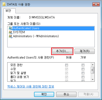 먼저, MSSQL 의 기본 저장 경로의 권한을 확인해보자.