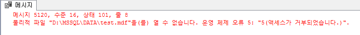 물리적 파일 "D:\MSSQL\DATA\test.mdf"을(를) 열 수 없습니다. 운영 체제 오류 5: "5(액세스가 거부되었습니다.)".