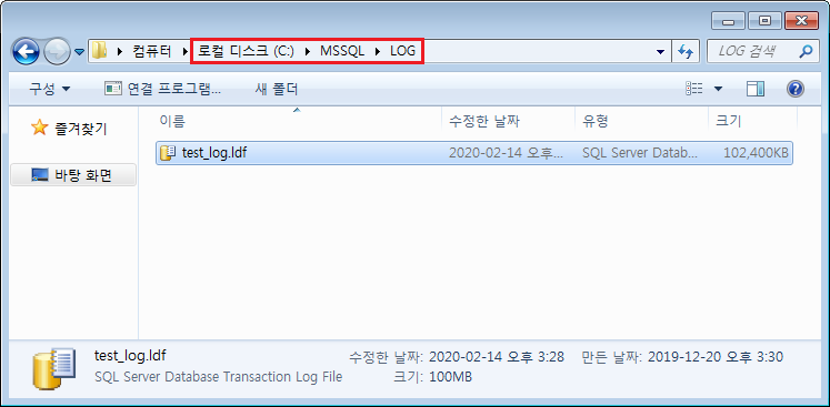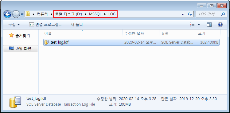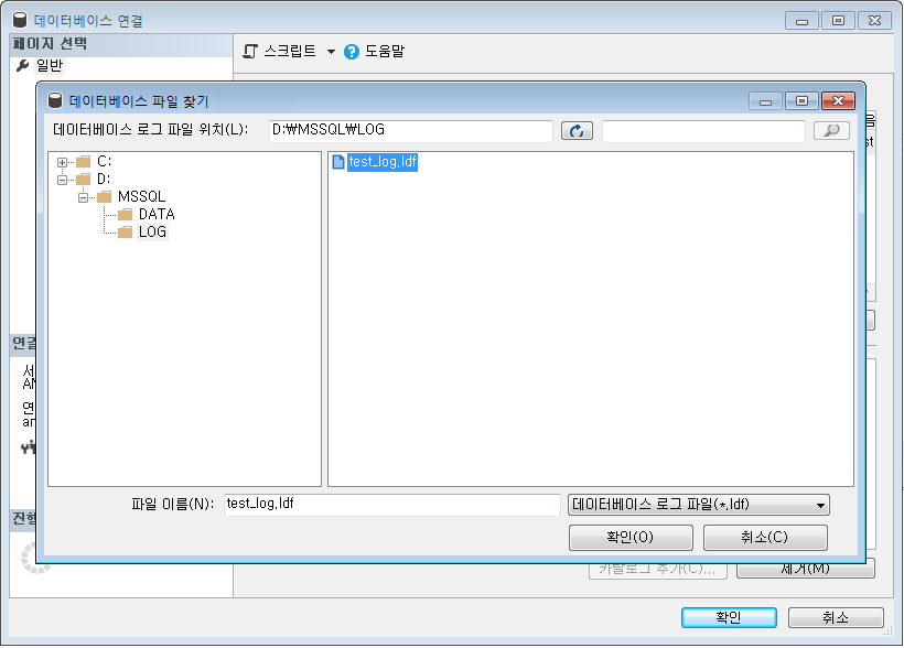 C:\MSSQL\LOG\test_log.ldf 에서 D:\MSSQL\LOG\test_log.ldf 로 옮겨주었다.