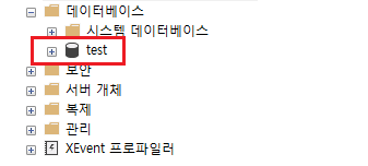 skipchecks 가 true 로 설정된 test 데이터베이스를 분리한다.