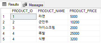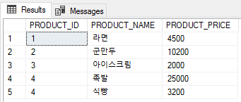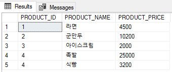 '라면'의 가격이 5,000 으로 인상되어 세션1 에서 가격을 UPDATE 해주었다.
