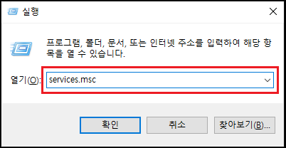 (4) 재시작을 해보자. 먼저 실행 (윈도우키 + R) 에서 services.msc 를 실행한다.