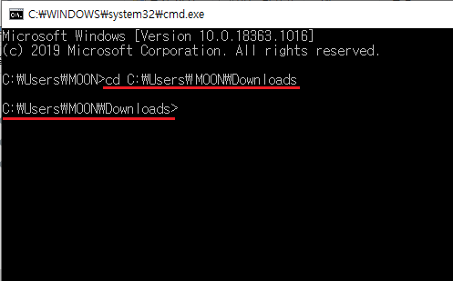 3. 'cd' 명령어를 통해 해당 경로로 이동시켜준다.