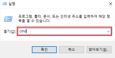 1. 실행창에서 도스창(cmd) 을 열어보자.