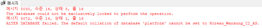 ALTER DATABASE [platform] COLLATE Korean_Wansung_CI_AS