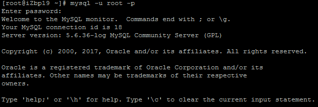 [root@iZbp19 ~]# cd /usr/local/mysql/bin