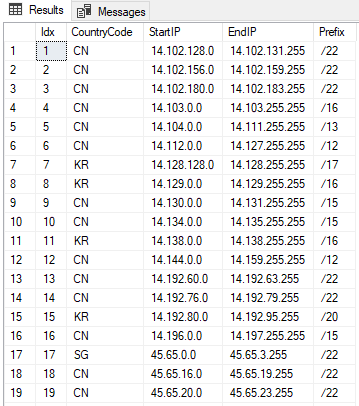 테이블까지 완료됐다면, 특정 IP 의 국가(코드) 조회 SP 를 생성해보자.
