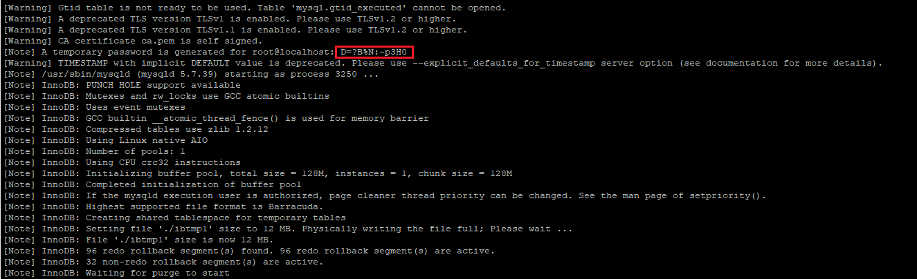/var/log/mysqld.log 를 살펴보면 root 계정의 임시 비밀번호를 확인 할 수 있다.
