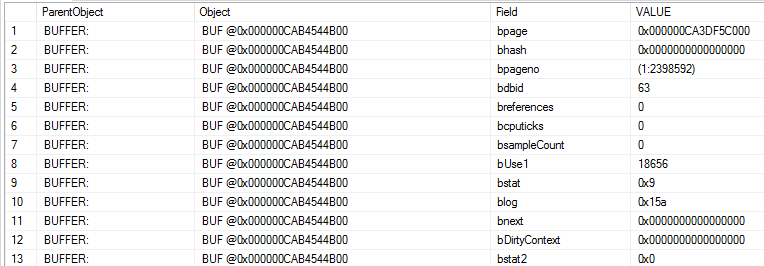 DBCC PAGE(TESTDB,1,2398592,3) WITH TABLERESULTS; -- 해당 옵션은 테이블 형식으로 보여줌