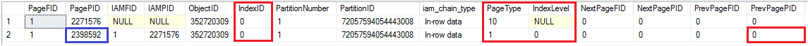| -2 | IAM 페이지 | 1 | 데이터 페이지 | NULL | 인덱스 구조와 관련 없음 |