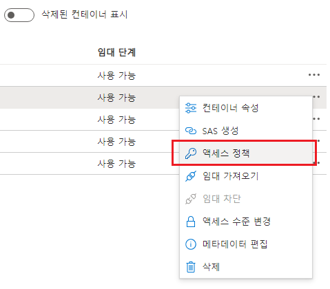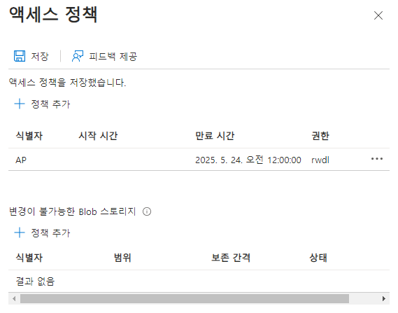 먼저 Blob 컨테이너에 액세스 정책을 만들어주자.